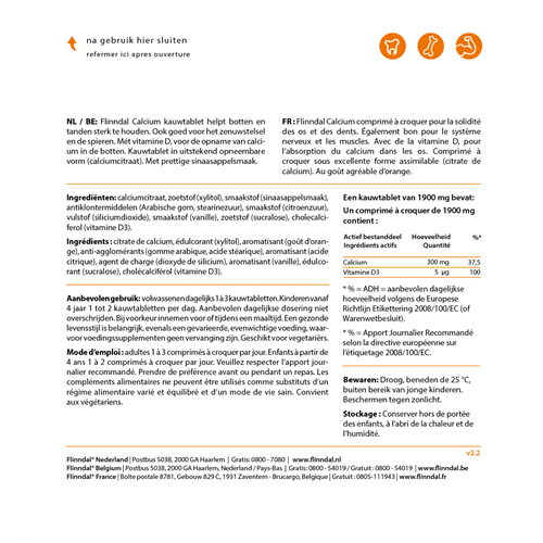 Daarnaast bevat het ook vitamine D voor de spieren en de opname van calcium in de botten. De gezondheidseffecten van alle ingrediënten in Flinndal Calcium Kauwtablet zijn volgens de Europese Unie wetenschappelijk aangetoond.