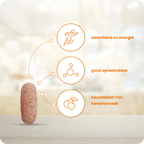 | Alleen geschikt voor kinderen vanaf 14 jaar en volwassenen | 1 kauwtablet per dag |