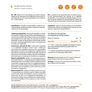 Flinndal Vitamine D bevat maar liefst 10 mcg vitamine D per tabletje. Dat is 200% van de aanbevolen dagelijkse hoeveelheid (ADH). Een krachtige, maar verantwoorde dosering die goed aansluit bij de verhoogde behoefte aan vitamine D die veel mensen in België hebben. Wilt u weten hoeveel vitamine D u nodig hebt? Kijk dan bij het doseringsadvies op de tab Bijsluiter.