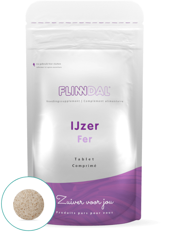 Le fer se présente sous différentes formes. Ces formes diffèrent par leur capacité d'absorption. Flinndal Iron contient du fer provenant du bisglycinate organique. Comme cette forme se dissout bien dans l'eau, elle est efficacement absorbée par l'organisme. Il est également bien toléré par l'estomac et n'affecte pas le transit intestinal, comme c'est parfois le cas avec d'autres formes de fer.