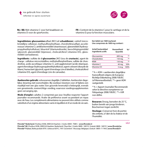 Une dose quotidienne (2 comprimés) de Flinndal glucosamine chondroïtine MSM contient 2000 mg de sulfate de D-glucosamine 2KCl, avec 1183 mg de glucosamine élémentaire. Un dosage responsable. Les autres composants Flinndal glucosamine chondroïtine MSM sont également dosés de façon responsable et forment un excellent supplément pour votre alimentation. Une dose quotidienne vous fournit par exemple 300 mg de chondroïtine et 300 mg de MSM.