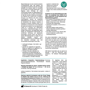 D-Mannose, hydroxypropylmethylcellulose, microkristallijne cellulose, magnesiumstearaat.