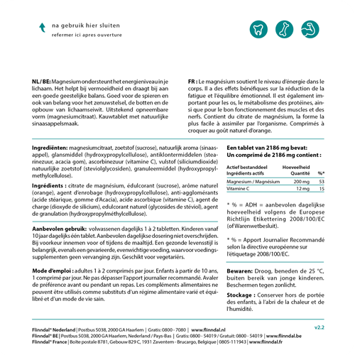 Le magnésium est essentiel pour les muscles et le système nerveux. Il aide également en cas de fatigue et contribue à un bon équilibre mental. Flinndal magnésium est composé de citrate de magnésium, un magnésium de haute qualité, qui est bien assimilable. Comprimé à croquer au goût naturel d'orange.