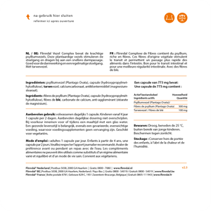 Flinndal Complexe de Fibres contribue à l'augmentation de l'apport en fibres. Il contient les puissantes fibres de psyllium. Ces fibres végétales stimulent le transit intestinal et contribuent à un passage plus rapide dans le côlon. Il contient également des fibres non digestibles à partir de blé.