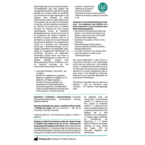 Flinndal D-Mannose est une dispositif médical visant à maîtriser une cystite et d'autres infections des voies urinaires et à empêcher les récidives.