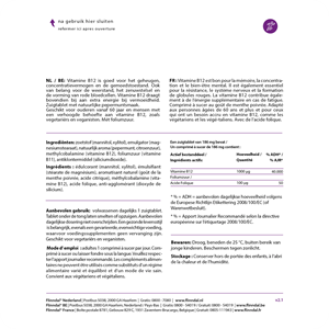 Edulcorant (mannitol, xylitol), émulsifiant (stéarate de magnésium), arôme naturel (menthe poivrée, acide citrique), méthylcobalamine (vitamine B12), acide folique (vitamine B9), anti-agglomérant (dioxyde de silicium).