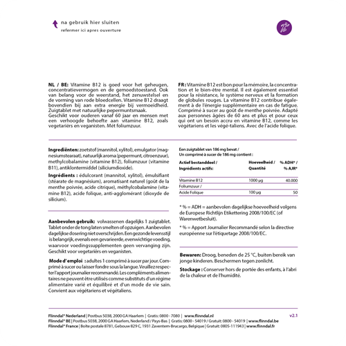 Flinndal Vitamine B12 comprimé à sucer contient par comprimé de 186 mg :