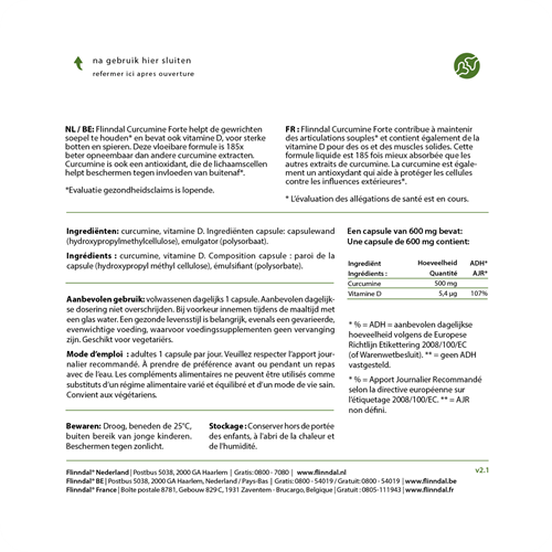 Flinndal Curcumine in vloeibare vorm is maar liefst 185 keer beter opneembaar dan andere extracten. Curcumine is een plantaardige stof die de gewrichten soepel helpt te houden. Ook is het een antioxidant, die lichaamscellen beschermt tegen invloeden van buitenaf.